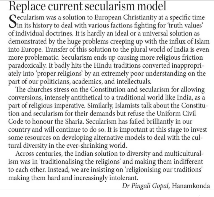 The polemical piece by Payam Sudhakaran was stunning, to say the least. It is a straight and standard narrative of the colonial times progressing without a break in the post-colonial independent India. There is a belief that all civilized countries ought to be liberal secular democracies abiding by the norms of neutrality, toleration, religious freedom, and the separation of politics from religion. This worked well in the non-plural Western societies for some time, but problems arose when applied uniformly to all societies. First, liberal secularism could not deliver its goods in non-Western societies like India. Second, the influx of Islam into Europe has shown cracks in this model. The third problem is that certain conceptual problems plague the liberal model. What counts as religion? No state or court possesses an impartial scientific conception that identifies and delimits the sphere of religion in a manner neutral to all religions.