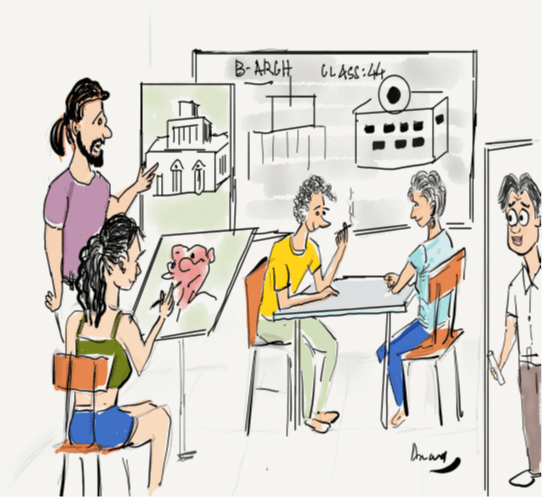 We had a renowned school of architecture in the city, where the finest students in the country studied. A classmate enrolled in the school, and eventually, he granted us access. We discovered why the “school of Archi” was more popularly known as the “school of anarchy” in the outside world. We entered in hushed silence and were struck by an almost bohemian lifestyle. Within the spacious classrooms, students sat backwards in their chairs, forming a circle around the teacher. Outside, some students were smoking while the teacher explained. Others were painting abstractly on the lush lawns, and some were lounging in hammocks, dressed in the shortest of shorts. It challenged our conservative sensitivities profoundly.